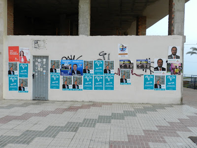 Al principio, pensé, se han equivocado, pero que va!, en dos paredes mas cerca de mi casa aparecieron estos carteles, compitiendo por el protagonismo de los candidatos.