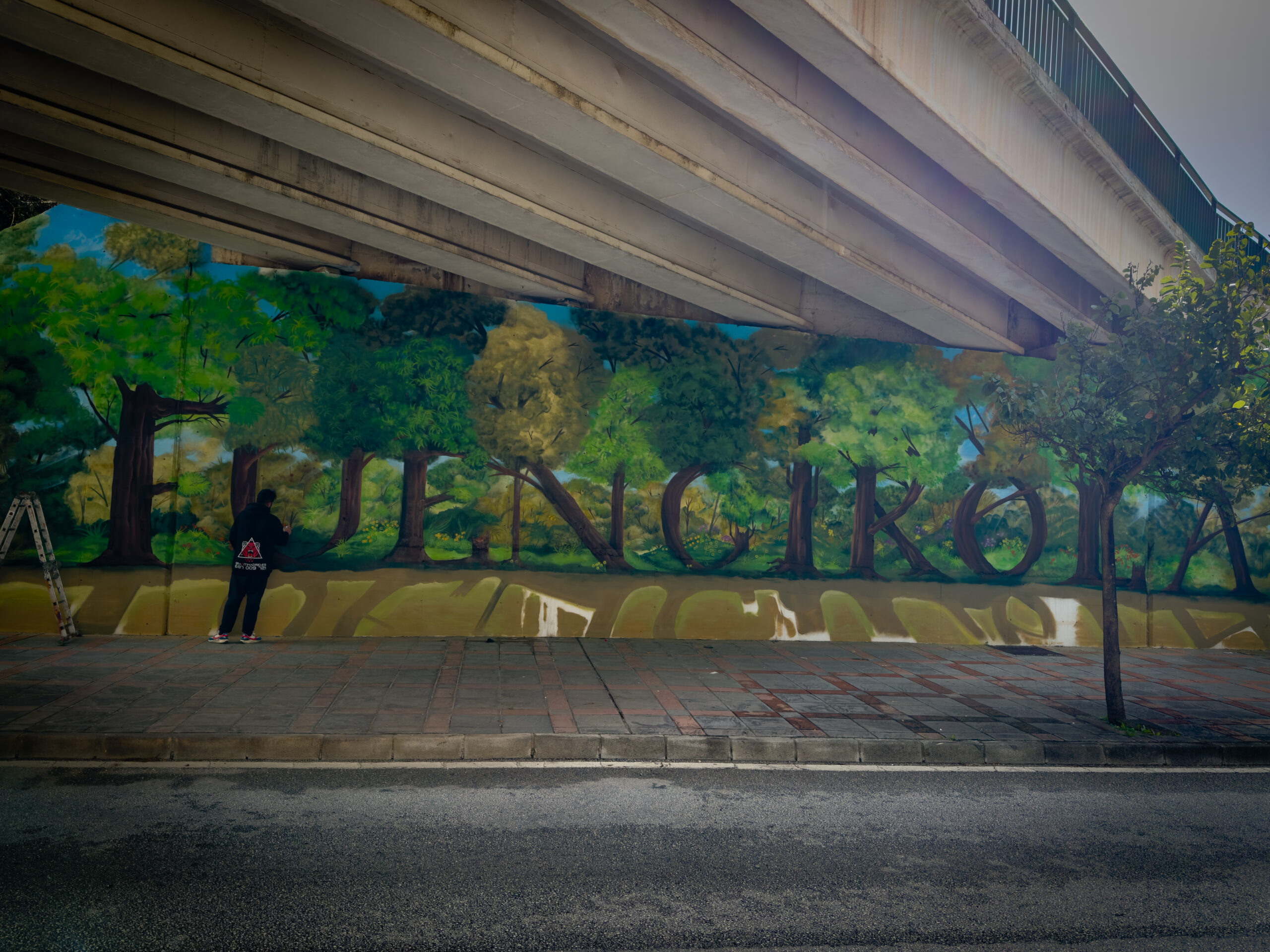 Por eso el remedio es que es, aparque y me acerque a hablar con el, se llama José, aunque es conocido como ‘Rol’. Una persona muy amable con el que hable un rato, y ya si, cruce la carretera para tener completo el cartel. Así podemos situar al artista junto a su obra, ahora si. Gracias Rol.